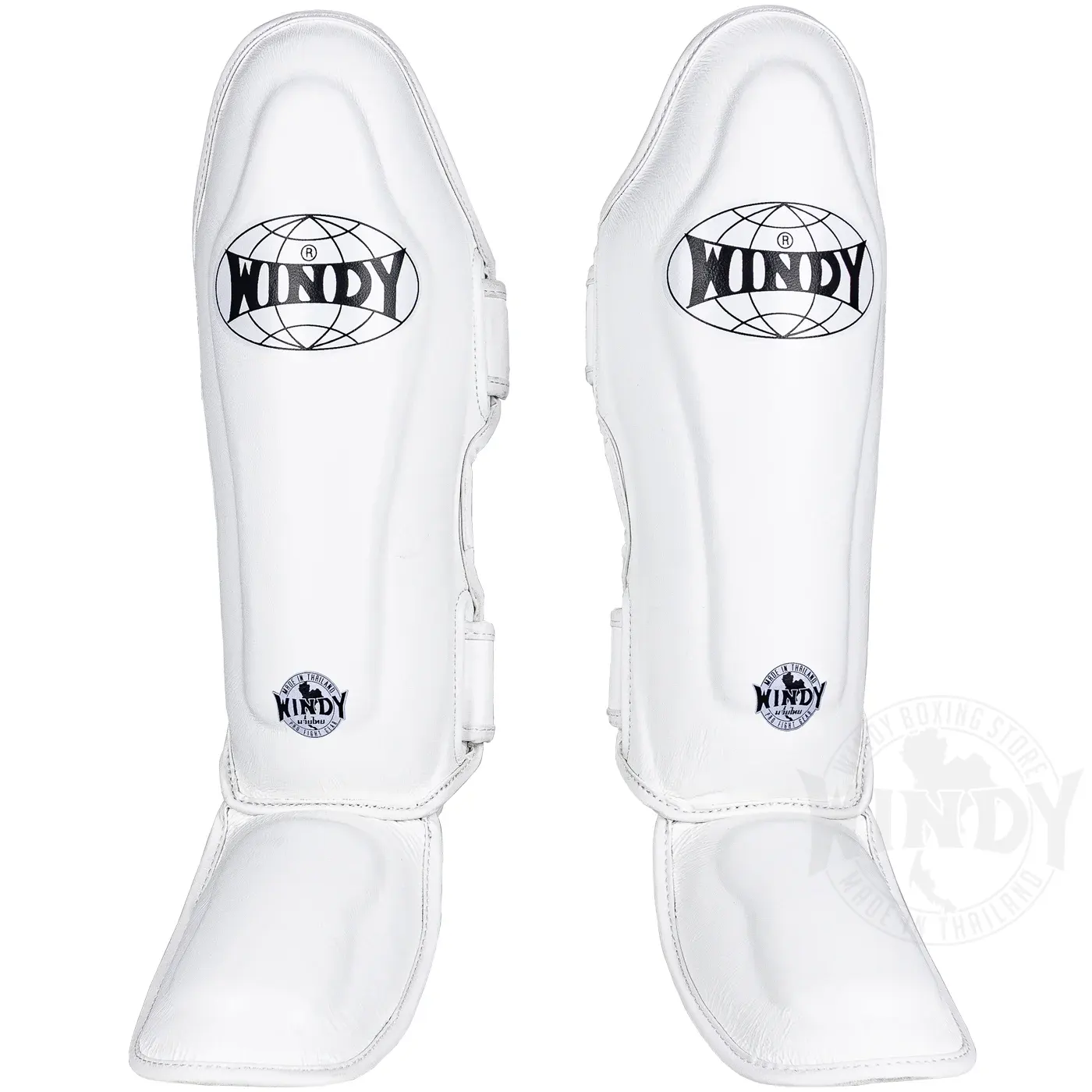 Windy Wit Lederen Kickboks Scheenbeschermers Extra Bescherming en Comfort